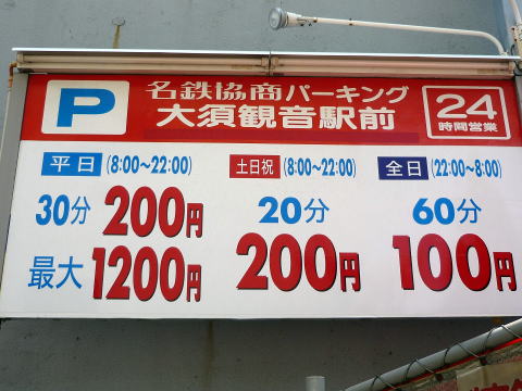 大須観音,大須商店街の駐車場料金はいくら?