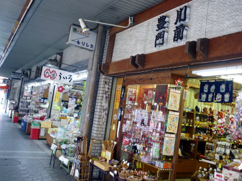 駅を出ると、正面に豊川稲荷参道の看板が出ているので、これを真っ直ぐ進みます。
