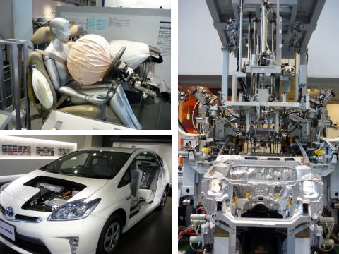 個人的に驚いたのは、自動溶接ロボットみたいなのがあって、私がボタンを押すと車の各パ−ツが一斉に運び込まれて、溶接するために組みあがっていく体験ゾ−ン。