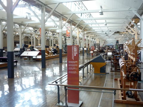 館内に入ると、かなりの数の繊維機械があります。