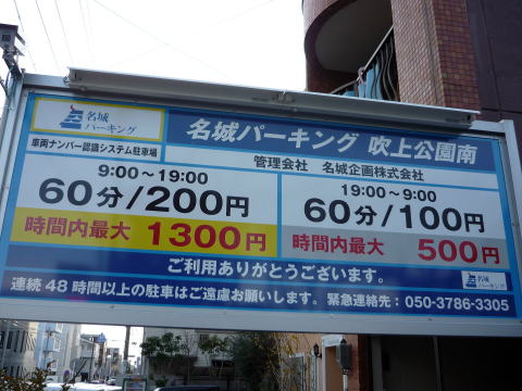 しかし台数もあまり多くなく、また徒歩で移動するのに数分かかったりしますが、満車の場合、こういった民間駐車場を利用すると良いです。