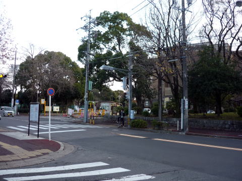 すると交差点の左斜めに鶴舞公園が見えますので、信号や車に注意して歩いていきます。