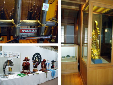 館内は手作り甲冑やレプリカ火縄銃体験、また清洲城に関する展示物や城内の石落としなど人形を使って解説しています。