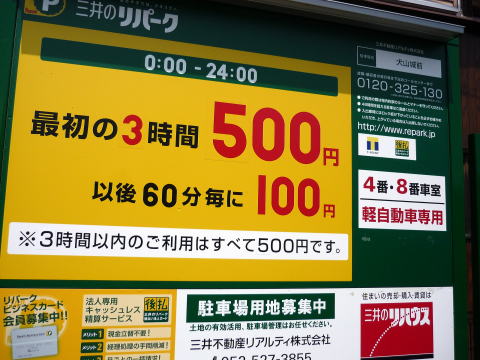 つまり、1時間停めてても、5時間停めてても、その日の営業時間内なら同じ料金ということです。