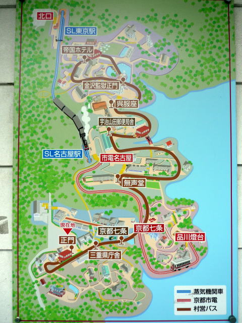 明治村では名古屋駅が村のほぼ中央にあっt、どの方向にも伸びる事ができるので、ある意味、交通の要所でもあります。