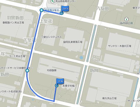 次に楽田駅からお菓子の城まで徒歩でのアクセス方法ですが、道順はザックリこんなカンジですね。