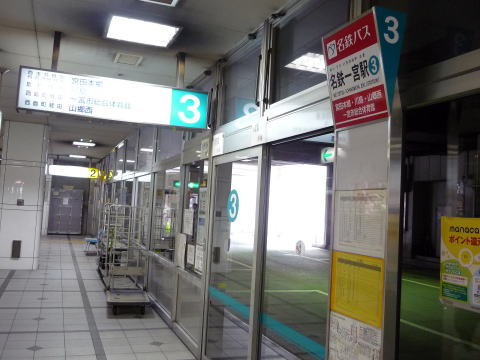 バス乗り場に着いたら3番乗り場からバスに乗ります。