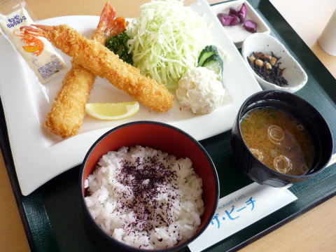 エビフライ自体、全国にある食べ物ですが、南知多ビーチランドの近くにある中部国際空港セントレアのまるは食堂のジャンボエビフライもちょっとした知多半島の名物になってますし、ここでもチャレンジしてみました。