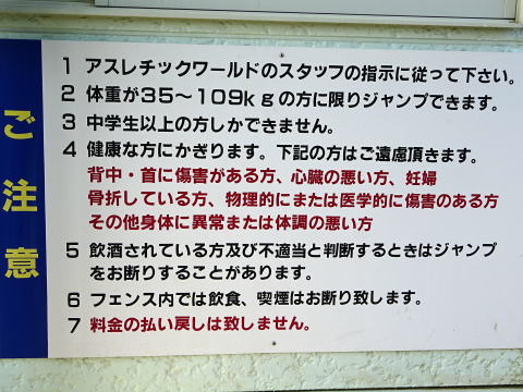 まずはバンジージャンプの注意事項をチェックしてみます。