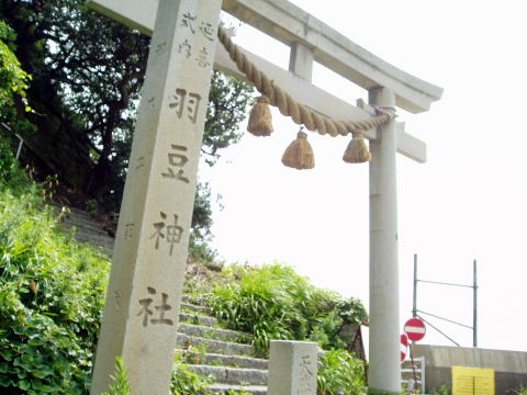 立体駐車場のさらに後ろ側が崖状の山になっているのですが、この山に登る入口に幡豆神社の石碑があるので、ここから登っていきます。