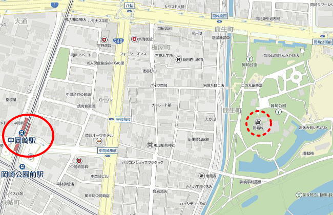 (地図の右側に岡崎城があります)