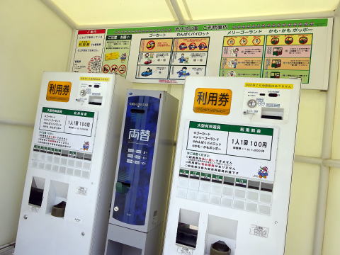 専用のチケット自販機があって、ここでチケットを買って、それぞれの乗り場でチケットを渡して乗るというシステム。
