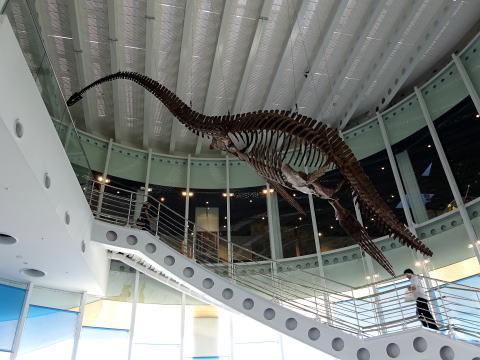 生命の海科学館は、地球の歴史や生物のうつりかわりを学ぶことができる科学館で、本物のいん石や恐竜の化石などを展示してあります。