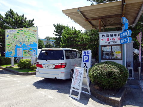有料駐車場は水族館の隣りにある竹島の駐車場です。