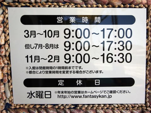 開館時間と定休日はこの通りです。