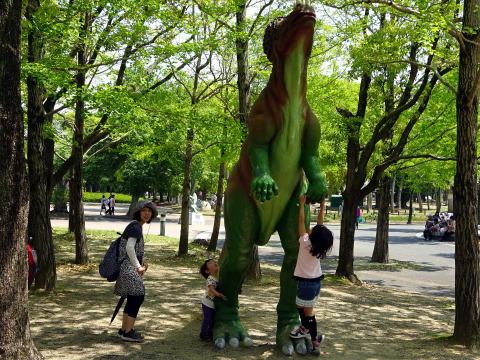 恐竜といえば、岐阜県郡上市や名古屋市緑区の恐竜探検ディノアドベンチャーライドが有名ですが、のんほいパークの恐竜は、少しテーマが違います。