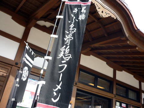 右は烏骨鶏ラ−メンで、チャ−シュ−ほか烏骨鶏の煮卵、野菜が入っています。