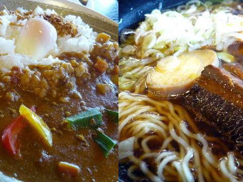 左が烏骨鶏カレ−。味の感想は、いろんなスパイスが入っているみたいで薬膳チック。
