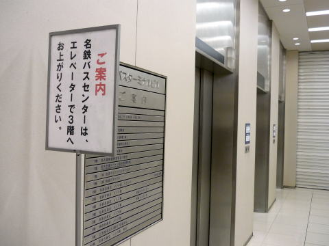 ↑名鉄バスセンタ−はタ−ミナルビルの3Fにあるので、エレベーターで移動します。