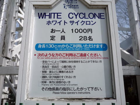 その理由は、ホワイトサイクロンはスチ−ルドラゴン2000と比べて半分の高さくらいまでしか登りませんし、速度もスチ−ルドラゴン2000に比べて3分の2ほど。