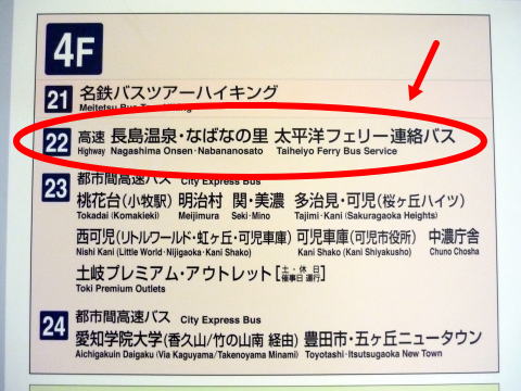 名鉄バスセンターに着いたらチケットを購入して、4Fの22番乗り場へ移動します。