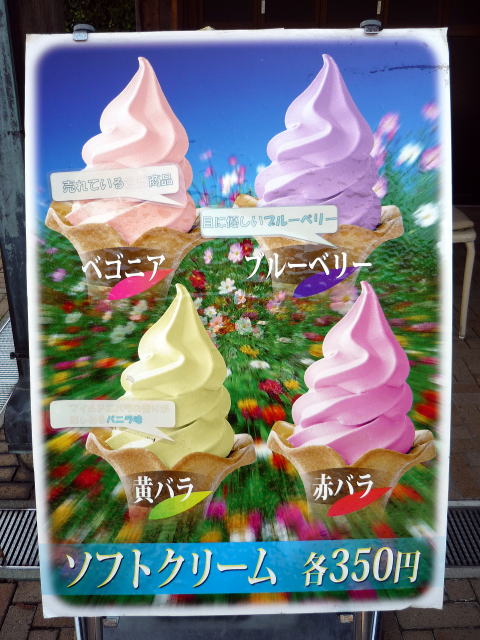 なんとバラ園で、花にちなんだ4種類のソフトクリ−ムを販売しています。