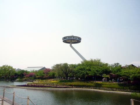 地上45メ−トルまで上がり、園内はもちろん、周辺の景色を見渡せる展望台で、一番上まで登ると360℃回転します。