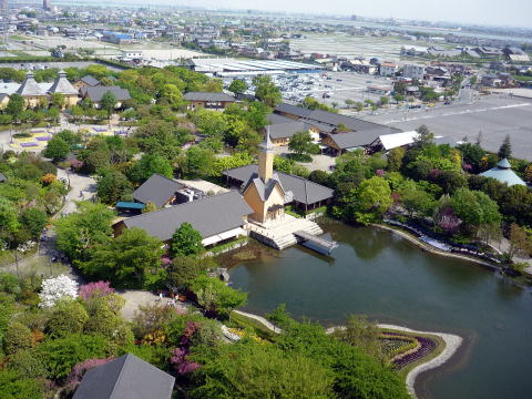 教会が見えますが、あれもなばなの里の中にある施設で、実際に結婚式を挙げることもできます。
