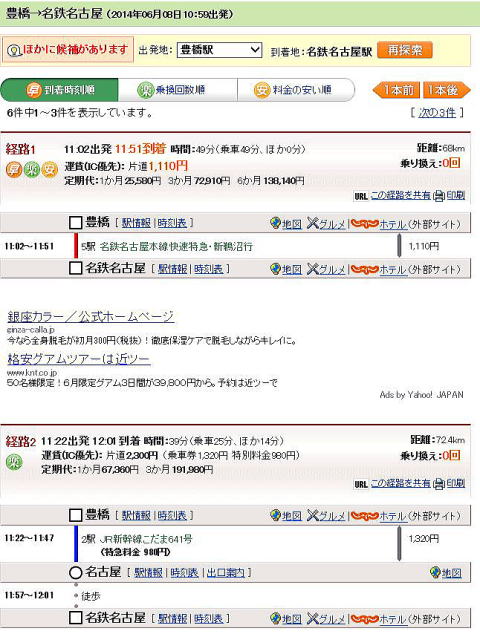 私もいろんな乗り換え案内サイトを使ってみた感想ですが、これが一番使いやすいと思いました。