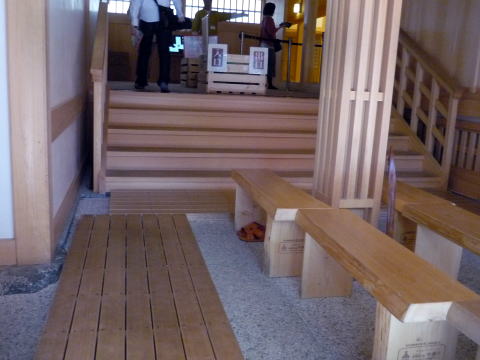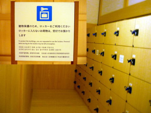 ・鞄(かばん)、リュックサック、肩掛け式バックなどは御殿を傷つける恐れがあるため、御殿内の無料ロッカーに預ける。