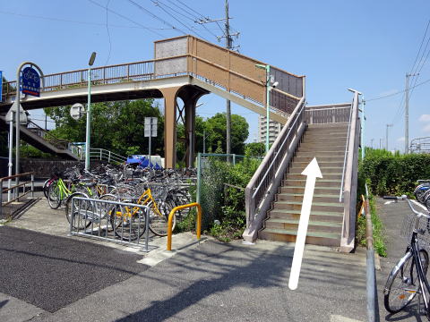まず左京山駅を出ると国道1号線側に歩道橋があるので、それを登ります。