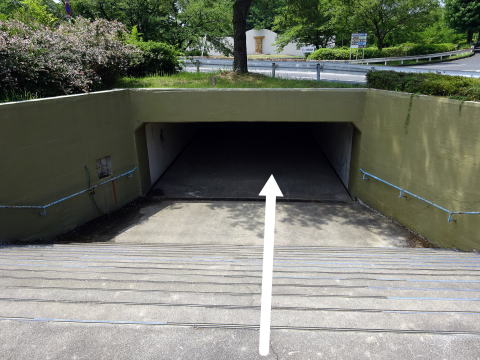 地下道を出てすぐを右に曲がり、階段を上ります。